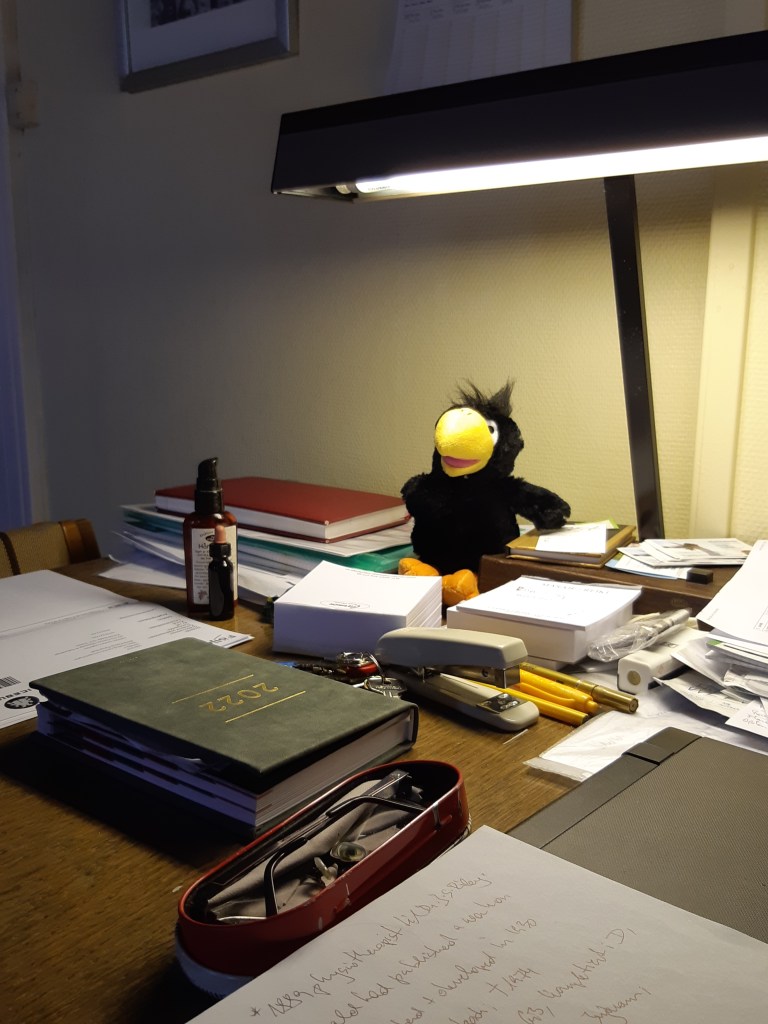 “Hei, Spassvogel! Nun, es ist Montag und ich fahre in meine Praxis.” – “Praxis, was ist das?” “Nun, da arbeite ich als Therapeutin!” – “Was du nicht sagst! Da komm ich mit!” – “Aber Spassvogel – so spassig ist das da auch nicht!” “Zuhause allein zu sitzen ist auch nicht gerade spannend!” “Eins zu null für dich, alter Spassvogel!” Mein Rabe sah mich halb traurig, halb belustigt an: nun würde er einen weiteren Teil meines Lebens kennenlernen… oder allein auf mich warten. – Und das ging gar nicht! Ja, ja, ich musste mich nun einmal damit abfinden, dass ich nun einen ständigen Begleiter hatte. Einen Raben, der an allem interessiert ist! So kamen wir mit dem Bus ins Zentrum Trondheims. Genau hier im Zentrum ist meine Praxis, in einem Haus ganz aus Holz gebaut aus dem Jahre 1850. Im Deutschen würden wir sagen, ein “Patrizierhaus”, so vornehm sieht es aus mit hohen Fenstern und Flügeltüren in der Hauptetage, wo mein Lokal ist. “Oh, das sieht aber cool aus! So ganz anders als dein Häuschen!” “Freut mich, dass es dir gefällt!” – “Ja, und was machst du da?” – “Nun, hierher kommen meine Kunden, wenn sie Gesundheitsprobleme haben oder Schmerzen, um eine Massage zu erhalten.” – “Aha”, krächzte mein Rabe…. Das war zu abstrakt für ihn! Er weiss – Gott sei Dank!- nicht, was Gesundheitsprobleme sind, was Schmerzen sind… – Lucky guy! Glücksrabe! Heute Montag ist allerdings ein ruhiger Tag, sodass ich mich der Administration widmen kann und meinem PC, meinen Bloggs…