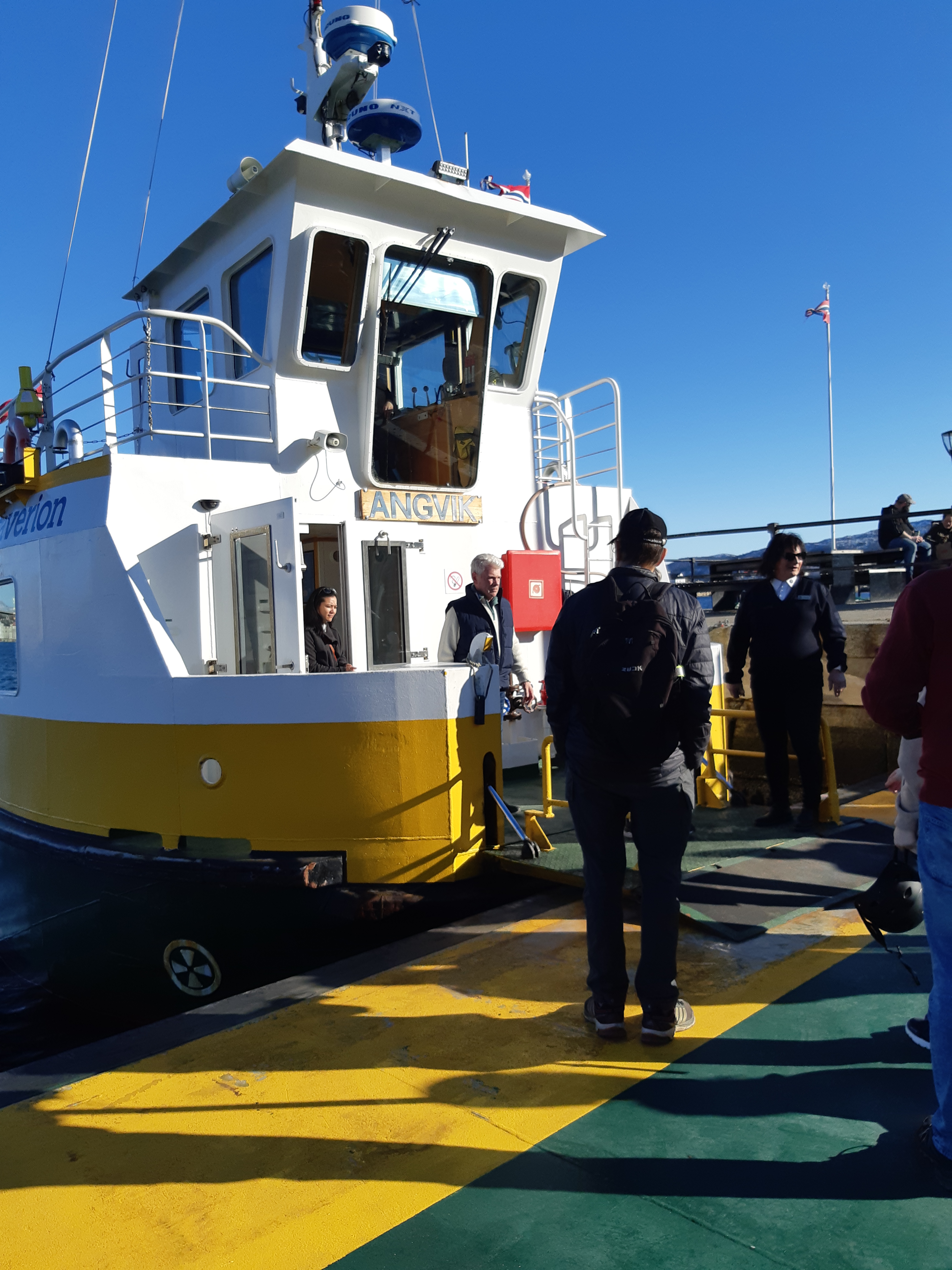 Man hatte mir empfohlen, das Boot zu nehmen, das regelmæßig zwischen den Inseln verkehrte, aldo mussten wir gleich mal zum Hafen! Ich hatte dieses zentral gelegene Hotel gewæhlt und tatsæchlich war es eine gute Ausgangsbasis. In kaum fünf Minuten war ich am Hafen, oder vielmehr, dem “stædtischen Hafen”: traditionell gesehen, hatten hier die Fischerboote angelegt, hier versammelte sich das Volk, um Meldungen entgegenzunehmen, es war der Mittelpunkt, ohne in der Mitte zu liegen. Und von hier aus ging besagtes Boot. Es gehørt sozusagen zum æltesten “øffentlichen Transportmittel” in det Geschichte!- und der Transport ist kostenlos! Erwartungsvoll gingen wir – Spassvogel und ich – an Bord und gleich hinauf auf das Deck. Hier hatte ich gute Sicht und frischen Wind!