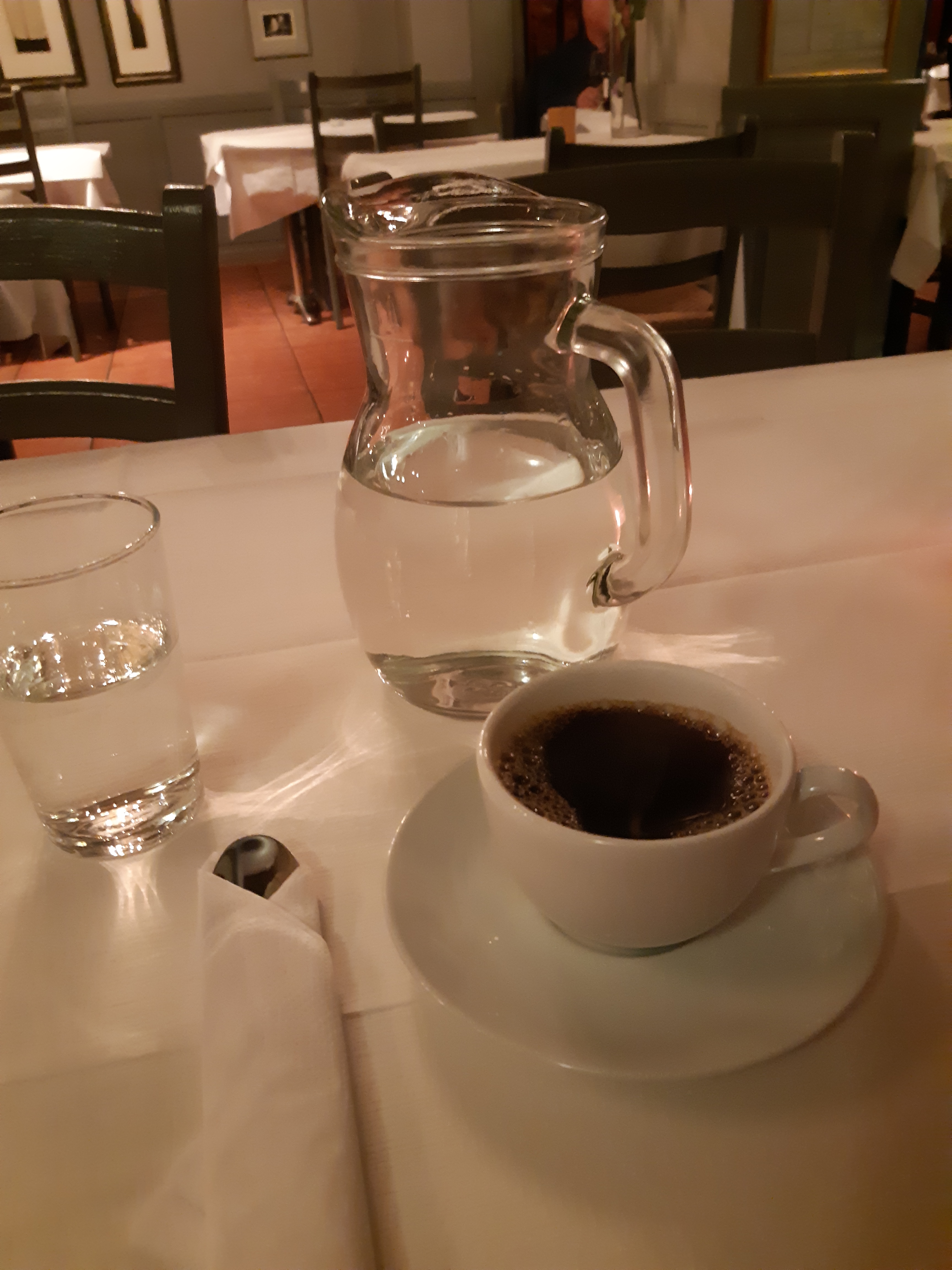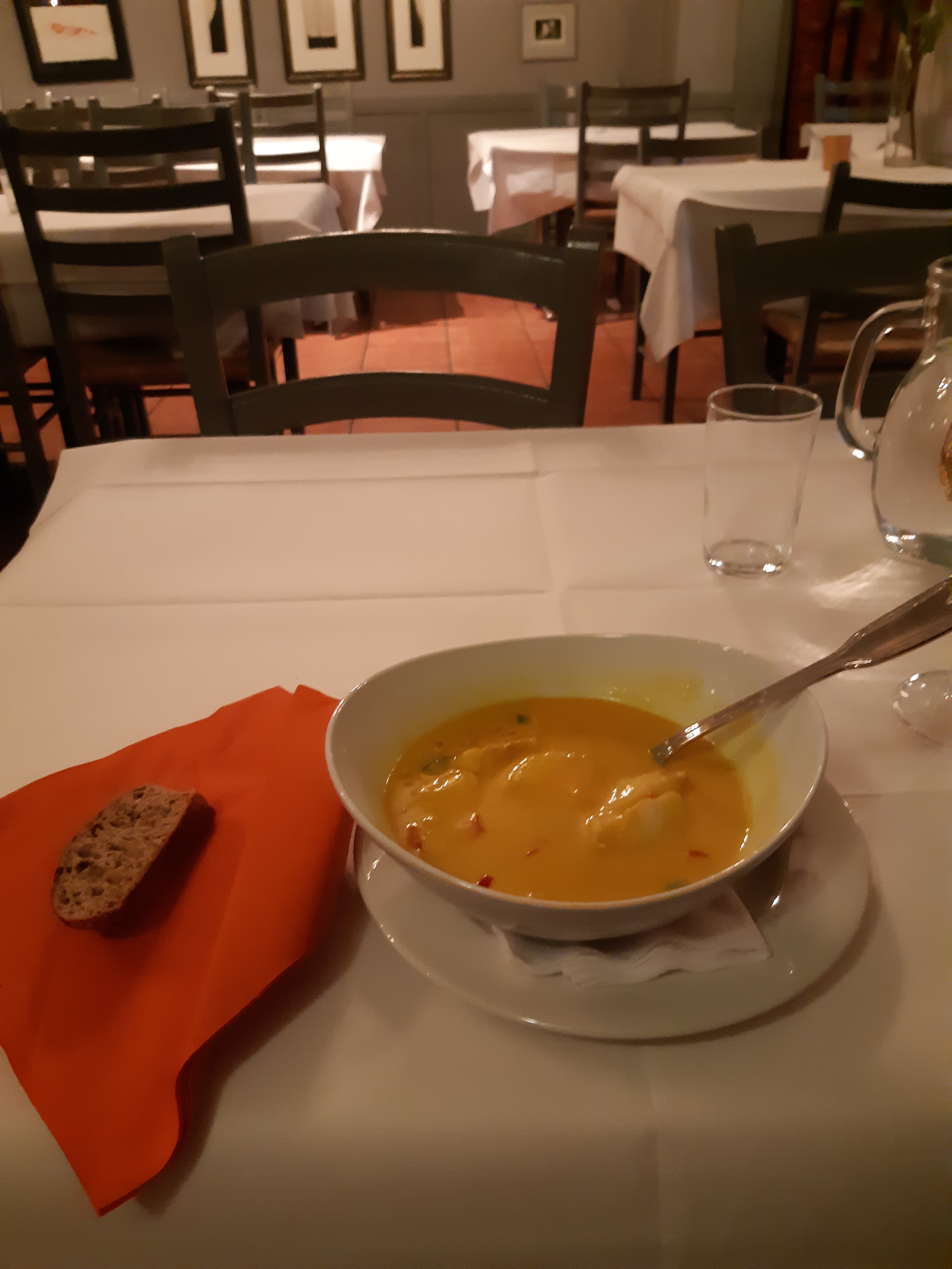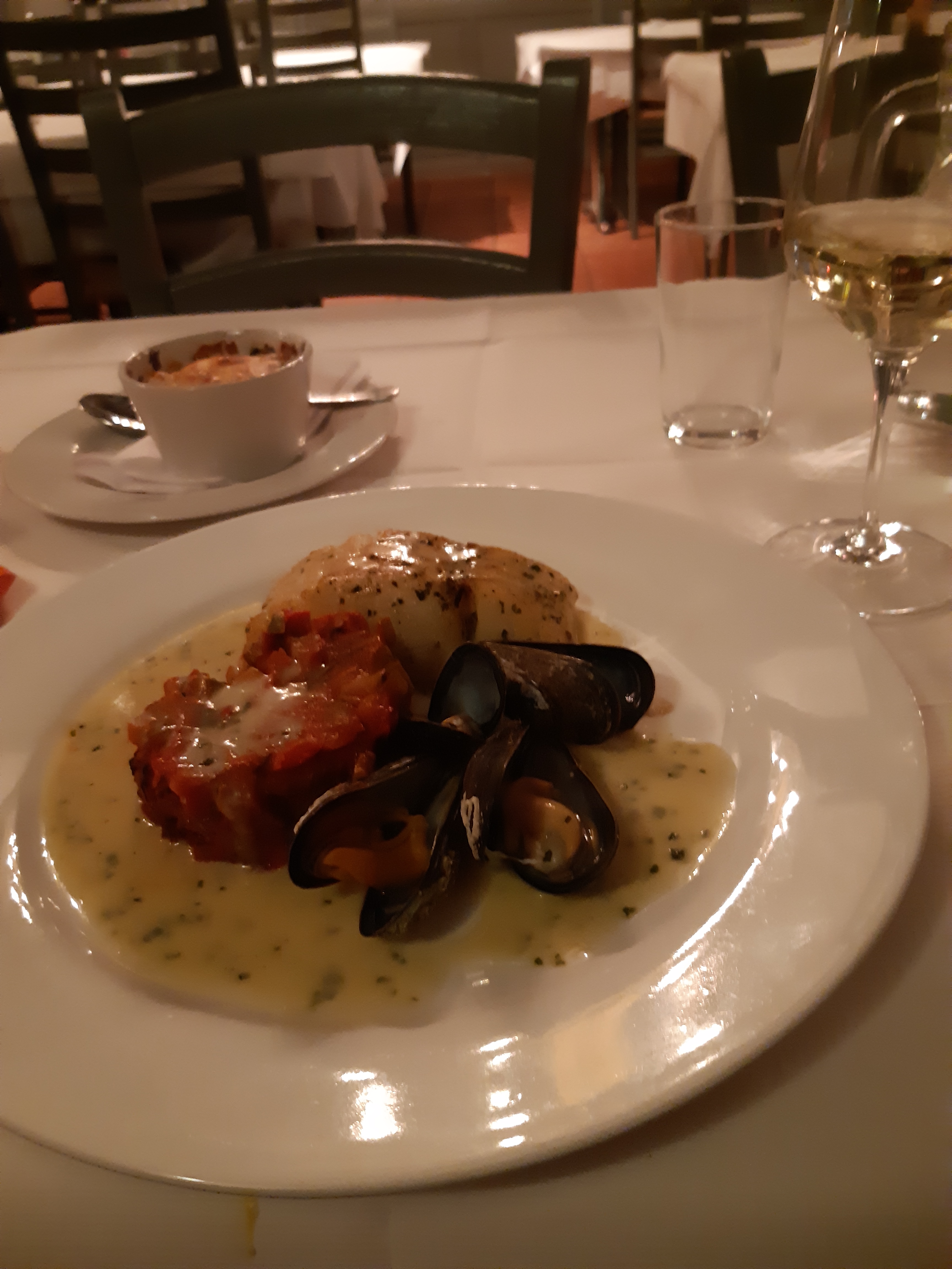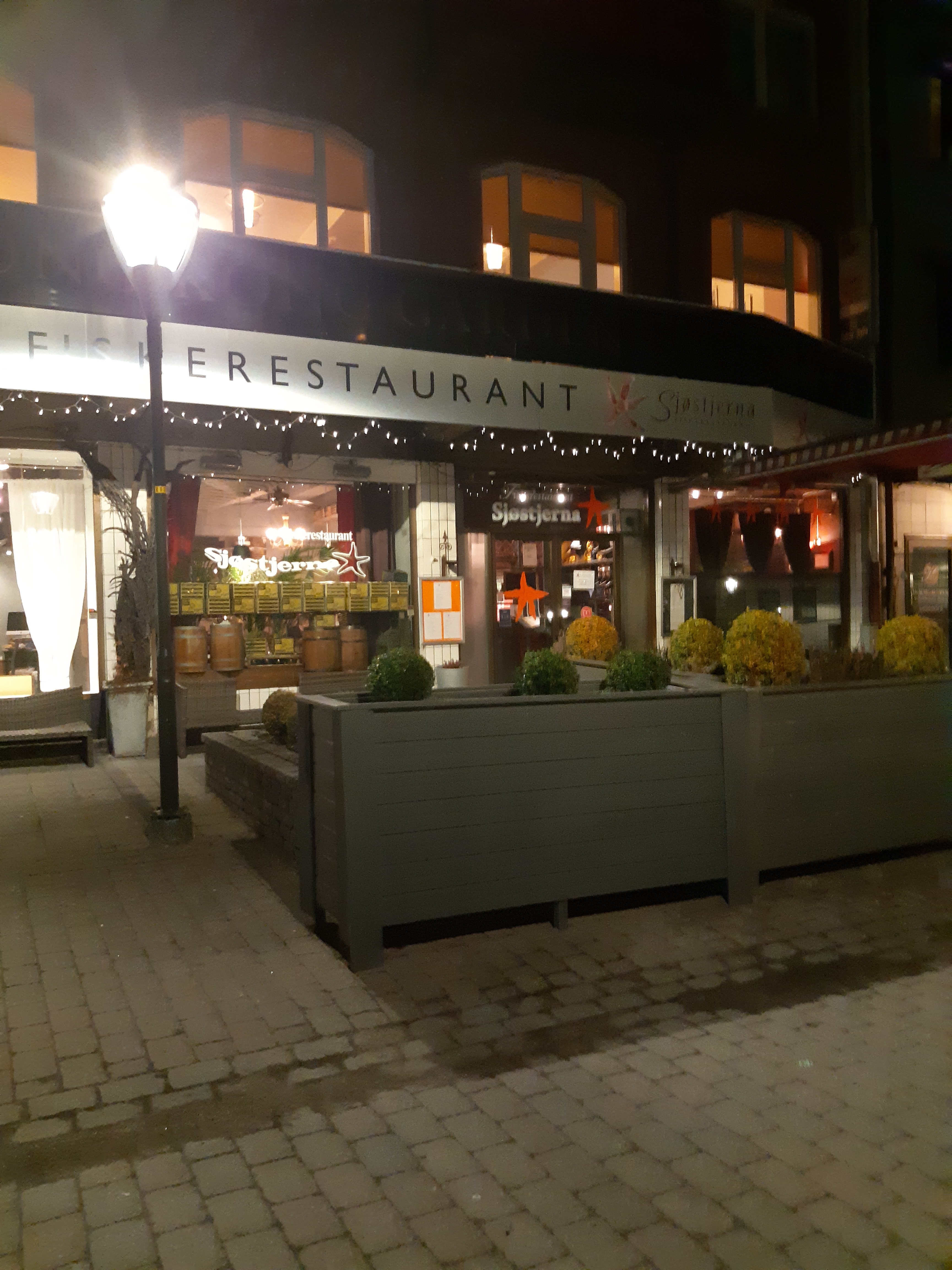 Müde kehrten wir ins Hotel zurück. Ein wenig ausruhen, dann suchte ich ein gutes Restaurant: “Sjøstjerne “, ganz in der Næhe verwøhnte mich mit ausgezeichneter Küche: cremige Fischsuppe mit etwas Gelbwurz, danach Dorsch in Basilikumsauce mit Ratatouille und gratinierten Kartoffeln. Nach einer Pause bestellte ich doch noch ein leckeres Dessert: Vanilleeis mit warmen Brombeeren und etwas Eierlikør! Ich konnte mich ” nach Hause rollen”! Aber diesen kulinarischen Genuß konnte mir keiner mehr nehmen! Im Hotel angekommen, fiel Spassvogel gleich um: er war so müde von den vielen Eindrücken des Tages, dass er nicht mehr sitzen konnte. Mir ging es nicht viel anders! Gut Nacht!