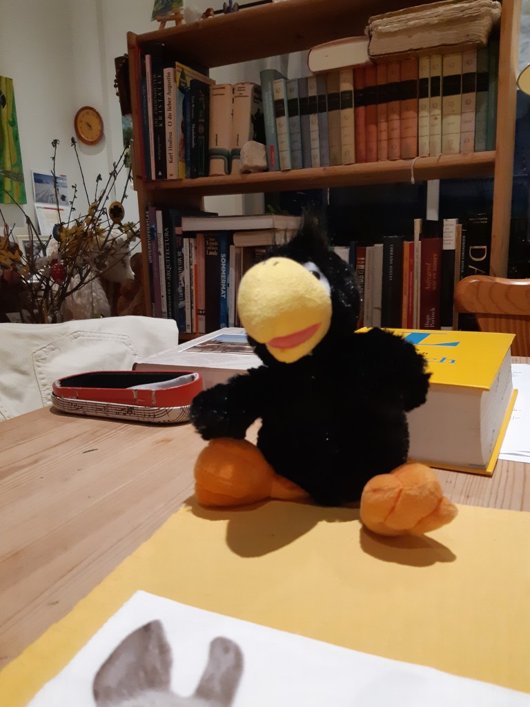 “Tss, tss…Carmen!” .. aufplustern, schütteln … Spaßvogel versucht sich diskret aber bestimmt bemerkbar zu machen … “Carmen, wir müssen uns ernsthaft unterhalten!” Mit schlechtem Gewissen ging ich zu meinem Raben. ” Ja, Spaßvogel, du hast recht. Komm, setzen wir uns zusammen!” –