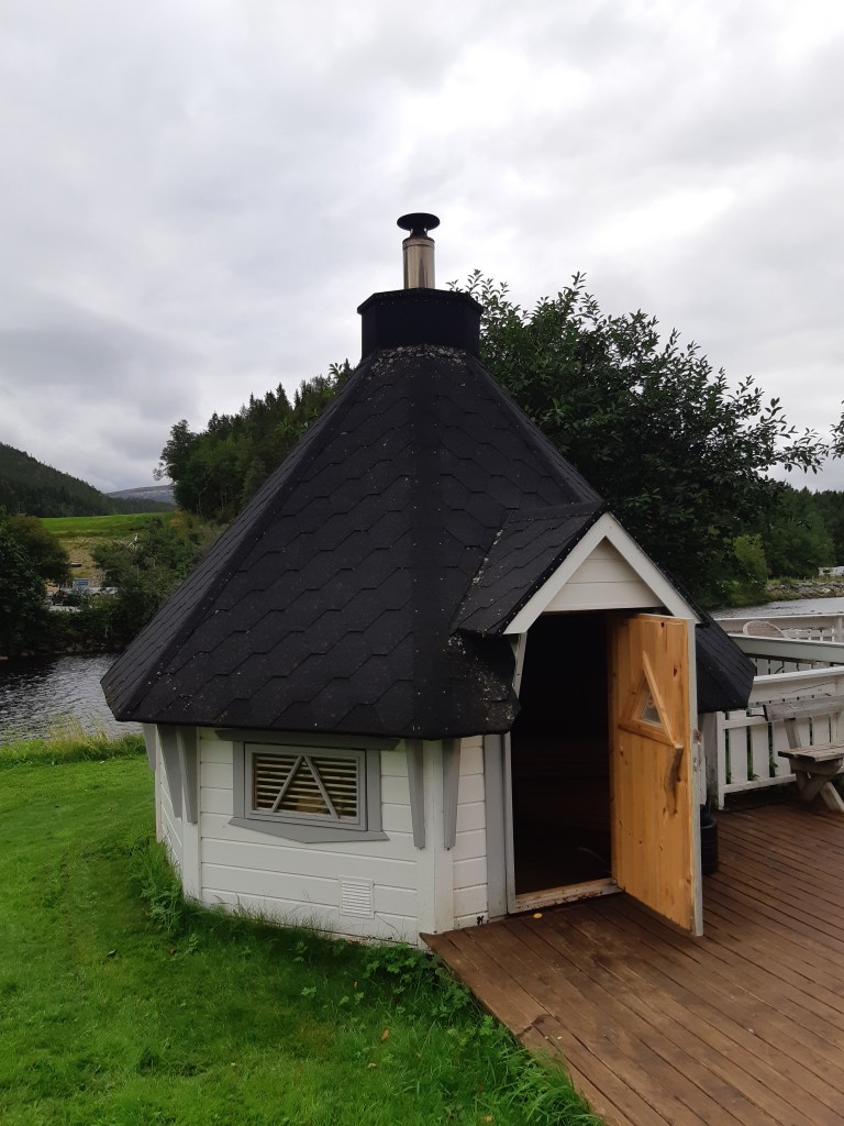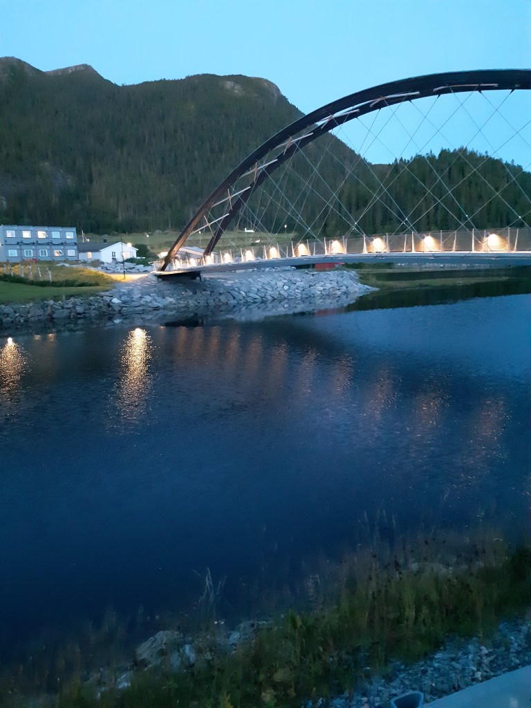 Nun mußte ich nur noch den “verflixten” Schotterweg finden! Nun gab es zwei Wegweiser: entweder noch weiter zum næchsten Gipfel oder zum Wassertank. Letzterer mußte ins Tal führen, nach Åfjord, zumindest zum Fluß! Dieser Pfad war leicht zu gehen! Aber sumpfig! Naja, Schuhe und Füße trocknen! Nach kurzer Zeit kam ich zu einem romantischen Steintisch – hier war der Schotterweg!!