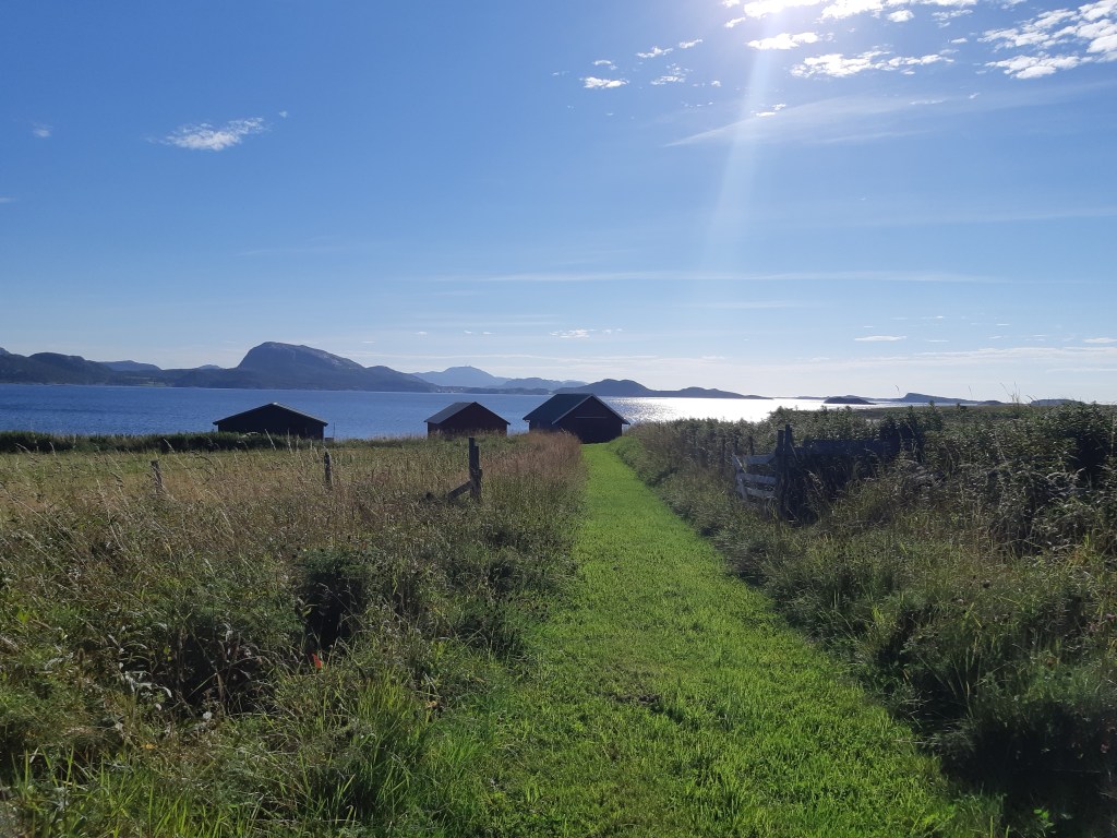 Das war der “Auto-Tag!” Es war ein Glück gewesen, ein Auto im Ort leihen zu kønnen! Der næchste offizielle Autoverleih war eine Autostunde entfernt! Meine Hauptziele waren beide gleichermaßen wichtig: auf alle Fælle wollte ich die naheliegende Inselgruppe Lauvøya besuchen. Ich war bei meinem allerersten Besuch von Fosen dort hinausgefahren – in meinem Buch berichte ich davon – und die Inselgruppen waren in mystischen Nebel gehüllt gewesen…diesmal sollte ich sie im Sonnenschein sehen! Mein zweites wichtiges Ziel war ein Besuch in einer Lachszüchtung. Diese Tour hatte ich per Telefon gebucht, für 11h morgens. Das Auto sollte schon um 8h abgeholt werden. Bis dahin mußte ich bereits gefrühstückt haben und ausfahrbereit sein. Der Weg zum Mechaniker waren gute zehn Minuten…
