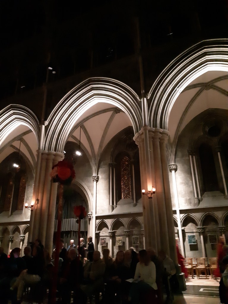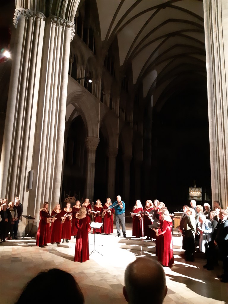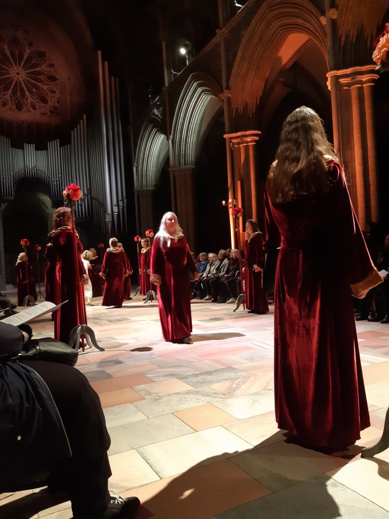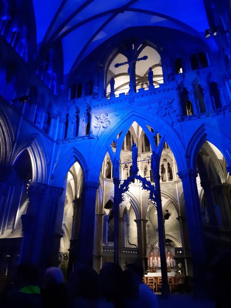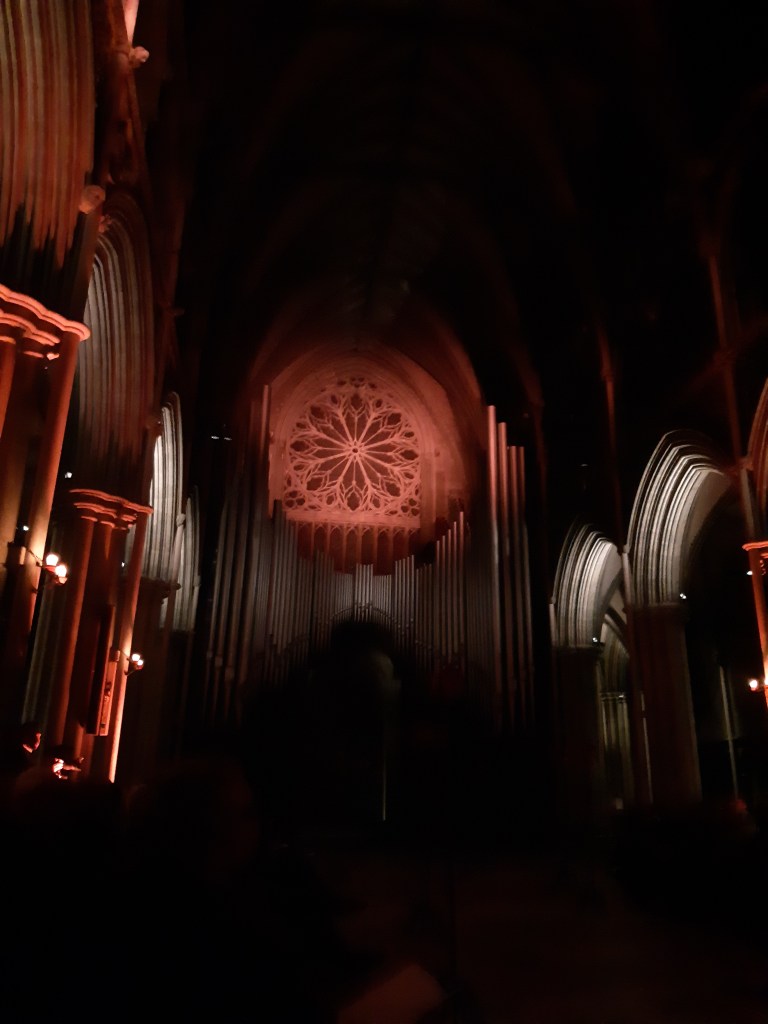 Die Mystik des Herbstes durfte ich vor wenigen Tagen im Dom zu Nidaros erfahren: der Chor “Venite Celebremus”, zu deutsch:”Kommt, laßt uns feiern”, hat sich zum Ziel gesetzt, alte gregorianische Gesænge neu xu inszenieren. An jenem Abend waren es Gesænge des Mittelalters, die zu jener Zeit im Nidarosdom gesungen worden waren! Sie entgingen der Zerstørungswut verschiedener Strømungen und sind in den køniglichen Archiven in Kopenhagen aufbewahrt! Welch ein Erlebnis, im 21. Jahrhundert Musik zu høren, zu genießen, aufzunehmen, die in diesem selben Dom vor über fünfhundert Jahren gesungen worden war! Ein Paar junger Ballettkünstler wirbelte lautlos und man møchte fast meinen, schwerelos, durch den Kirchenraum! Fast unbeschreiblich das Gefühl, das in mir aufkam. Es war Mystik pur und in den høchsten Schwingungen! – Auch das ist Herbst! Mystik, Dunkelheit, das Licht einer Kerze …