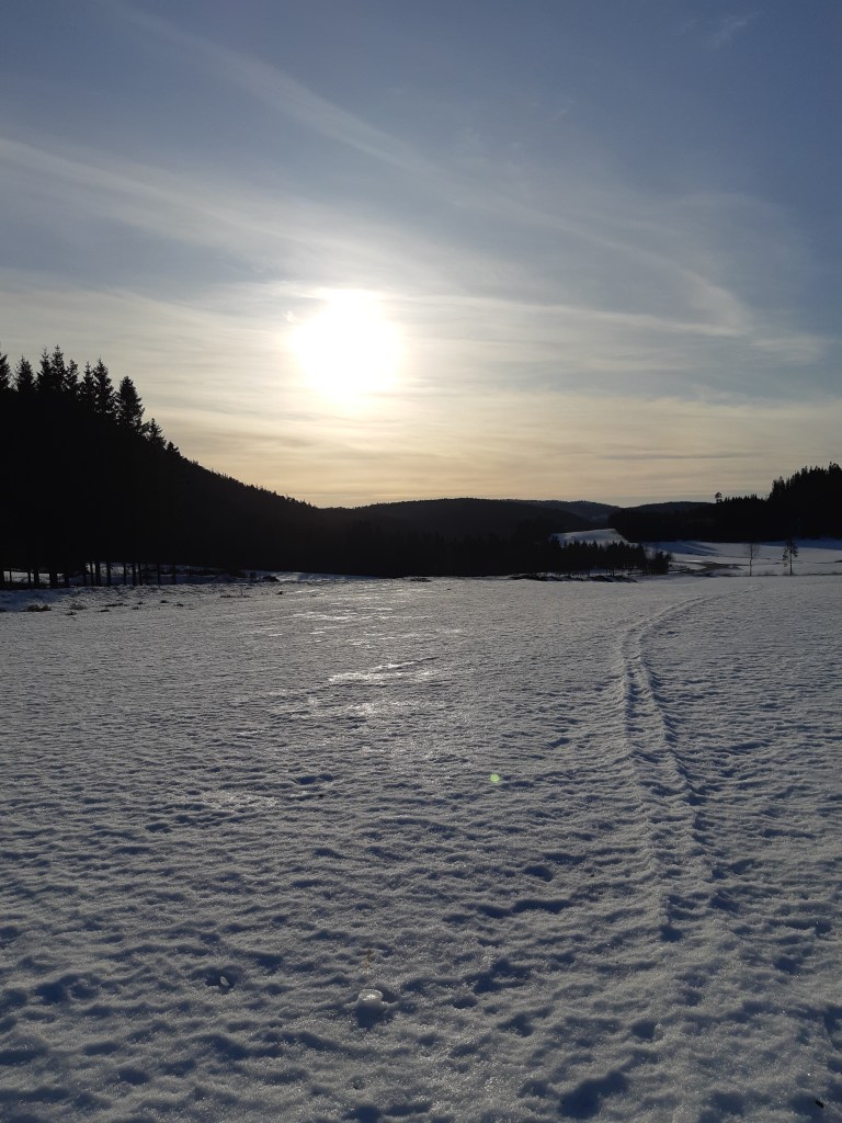 Aber gleichzeitig war auch die Landschaft sehr verführerisch! Hier hatte ich herrliche Møglichkeiten, direkt vor der Tür meine Langlaufschi anzuschnallen und über unberührte verschneite Wiesen zu wandern!