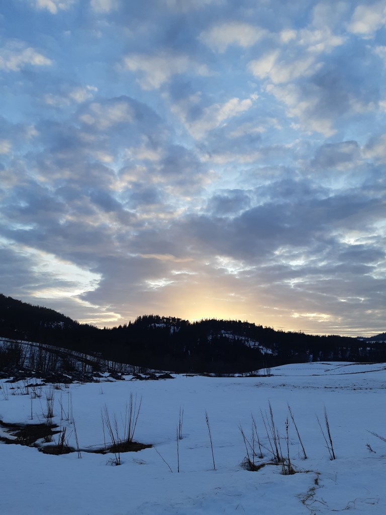 Am zweiten Februar ist Maria Lichtmeß: im Allgeinen wird es hier nicht gefeiert. Doch zum ersten Mal fand ich die tiefere Bedeutung. An diesem Tag schien zum ersten Ma die Sonne hoch genug über unseren Hügel, sodaß sie in die Stube und Küche schien! Da verstand ich auch, warum mancherorts in Norwegen an dem ersten Tag, da die Sonne wieder über den Horizont klettert, gefeiert wird! Ich erinnere mich der Erzæhlung einer alten Dame aus Tromsø. An dem ersten Sonnentag war schulfrei! Alle feierten!😊
