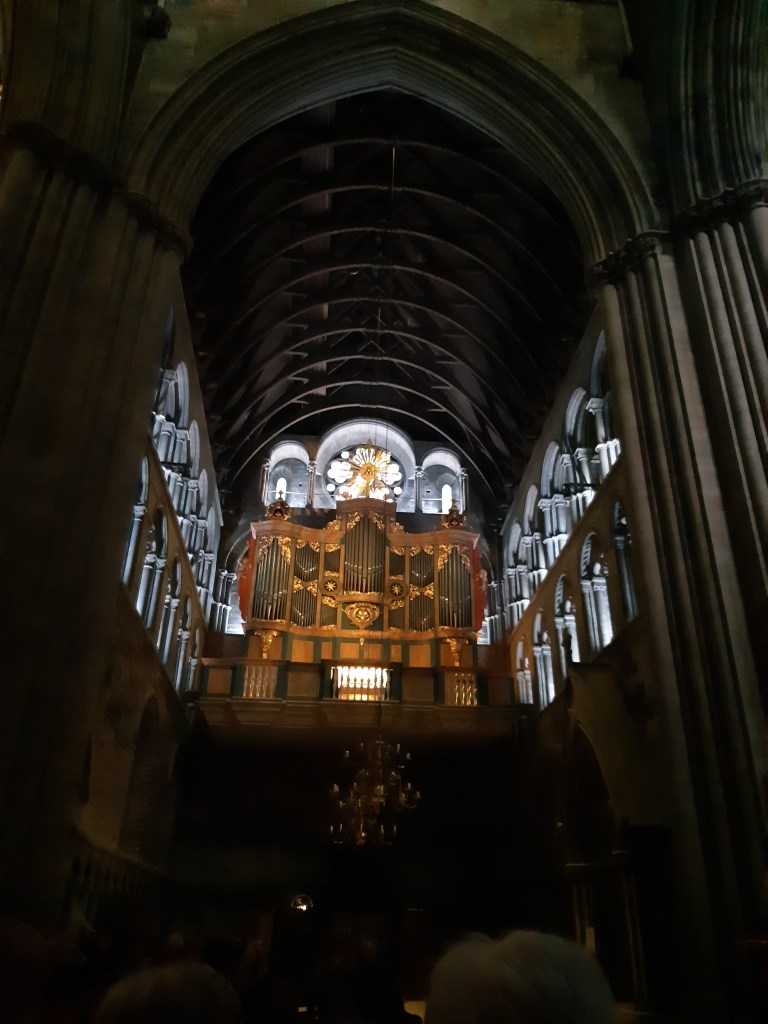 Die geführte Besichtigung des Domes brachte mir nichts Neues, da ich schon viel über diesen Dom gelesen hatte. Einige baulichen Besonderheiten wurden erwæhnt, wie auch die DRITTE Orgel. – Ja, in der Tat: Nidarosdomen hat drei Orgeln! Diese dritte ist in der Høhe in einem Galleriegang “versteckt” und wird sozusagen “über Computer” gespielt. In einem früheren Artikel habe ich über den Dom geschrieben. Auch in meinem Buch “Briefe aus dem Norden”. Aber es gibt so viel über den Dom und meine Erlebnisse in ihm zu erzæhlen …